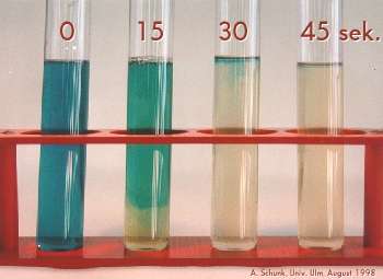 man das Gefäß ruhig stehen, entfärbt sich die "Tinte" wieder.